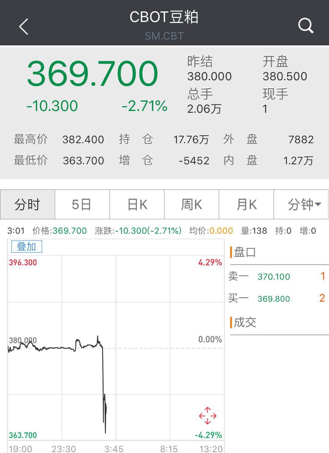 大豆、汽车被喻为是中美贸易战的核武器。而此消息公布后,美大豆期货市场出现闪崩。芝加哥CBOT美豆指数、BOT玉米直线跳水逾3%。