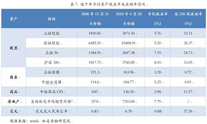 越不靠谱的投资品收益越是高的惊人,如中晋系号称有10%-25%甚至40%的高收益,远超过市场平均收益率。然而,综观大类资产2008年12月31日至今近10年以来的收益率,可以发现其平均年化收益率均在10%以下,收益率最高的房地产平均年化收益率为7.79%。以股票为例,上证综指和深证成指近10年的年化收益率均在5%-6%之间,包含上证市场规模最大、流动性最好的蓝筹股的上证50年化收益率也仅为7.19%。但股票资产近250周波动率均在20%以上,风险远远高于债券、商品等资产。而风险最低的债券年化收益率均较低,上证国债为3.28%,中证公司债为5.25%。