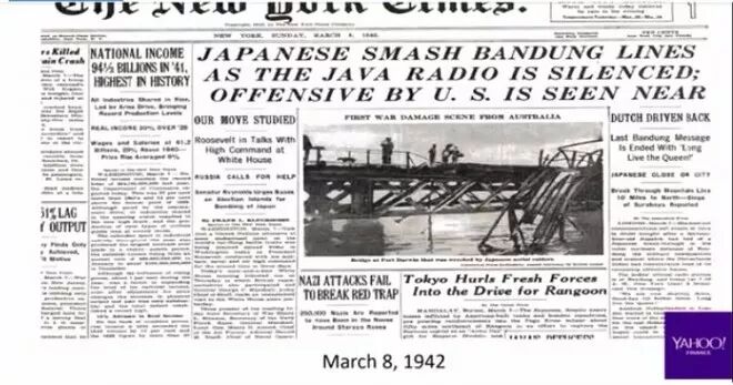 报纸的头版头条上,接连不断地出现太平洋战事失利的消息。大家现在看到的是 1942年3月11日之前的几个新闻标题。