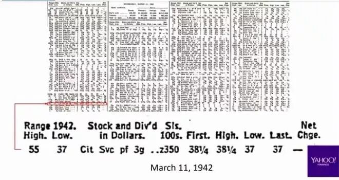 1942 年 1 月份,也就是两个月之前,City Service 优先股的股价是 55 美元。