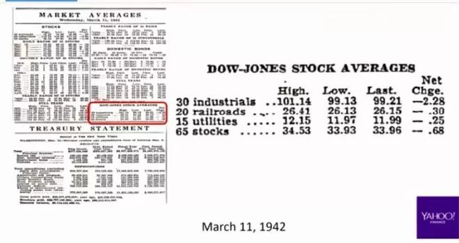 那天的行情不好,道指跌破 100 点,当天跌了 2.28 点,换成现在的道指相当于一天跌了 500 点。
