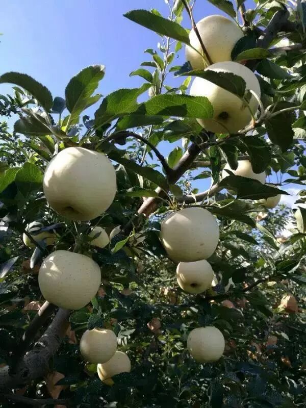 上色后摘果:摘袋后苹果受到阳光照射,大约15天之后,会比较均匀的上色,即变成我们日常看到的红色苹果。摘果又是一个需要细心的活。要把苹果一个一个的小心的从树上摘下,摘下的时候苹果的尾巴(苹果跟树枝连接的部分)给剪短,以防苹果堆砌的时候扎伤上面的苹果。