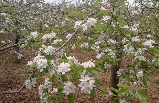 开花与授粉:苹果开花一般在阳历四月间视天气的温度和湿度情况,开花时间有个约半个月左右的早晚差异,开花时间特别害怕倒春寒,这时的倒春寒如果温度较低,会直接导致花开不了或者花蕾生长不好,进而影响苹果生长。