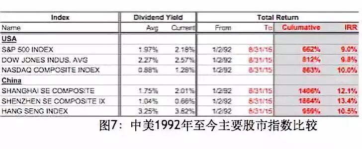 首先我们还是用数据来说话。我给大家看一下我们能够搜集到的过去的数据,对中国股市和其他市场的表现做一个比较。图5是美国从1991年底到去年底的数据,我们看到其表现几乎和过去两百年的模式是一样的,股票的投资在不断地增加价值,而现金在不断地丢失价值,这都是因为GDP的不断增长,和过去两百年基本上是一样的。