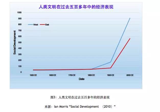 但是到了近代以后,我们看到在过去的三百年间,突然之间人类文明呈现了一个完全不同的状态,出现一个巨幅的增长。