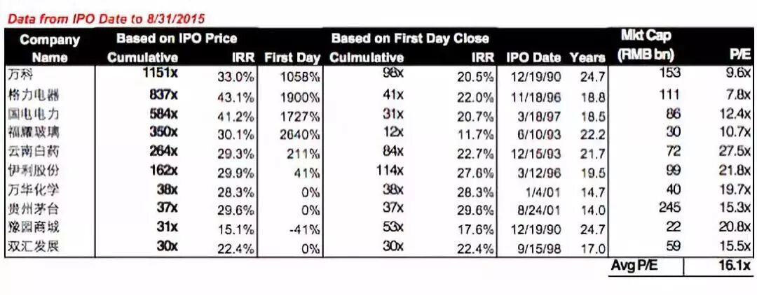 有没有人在过去二十年里投资赚了一千倍?你投资万科一家就是一千倍,这是存在的。当然真正能赚到一千倍的只有最早的国有股份原始股,因为上市第一天就涨了十倍。所以原始股现象我单列出来。第一天之后大家都可以投,如果买了仍然可以赚近百倍,伊利110多倍。这个指数并不是抽象的指数,而是实实在在的,出现了这些公司,这些公司从很小的公司变成了很大的公司。