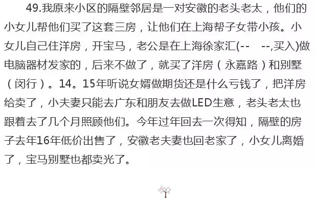 23.我好多这个案例,说个贴近生活的吧,上海金山枫径的服装城项目10多年前来浙江招商,有个公务员借了很多钱买了12套,波折了十多年,项目没有起色,因为服装城有大产权证,其中10套拖着不给办证,最后还被服装城抵押给了民生银行(– –,买入)和徐汇区抵押金融公司了,至今没有一分钱的租赁收入,服装城长满荒草,十多年间从富裕沦为赤贫,负债不但没还完,利滚利大概比当初还翻了一倍。现在嘛……呵呵,豪赌失败的结果就是被时间磨掉所有人格。