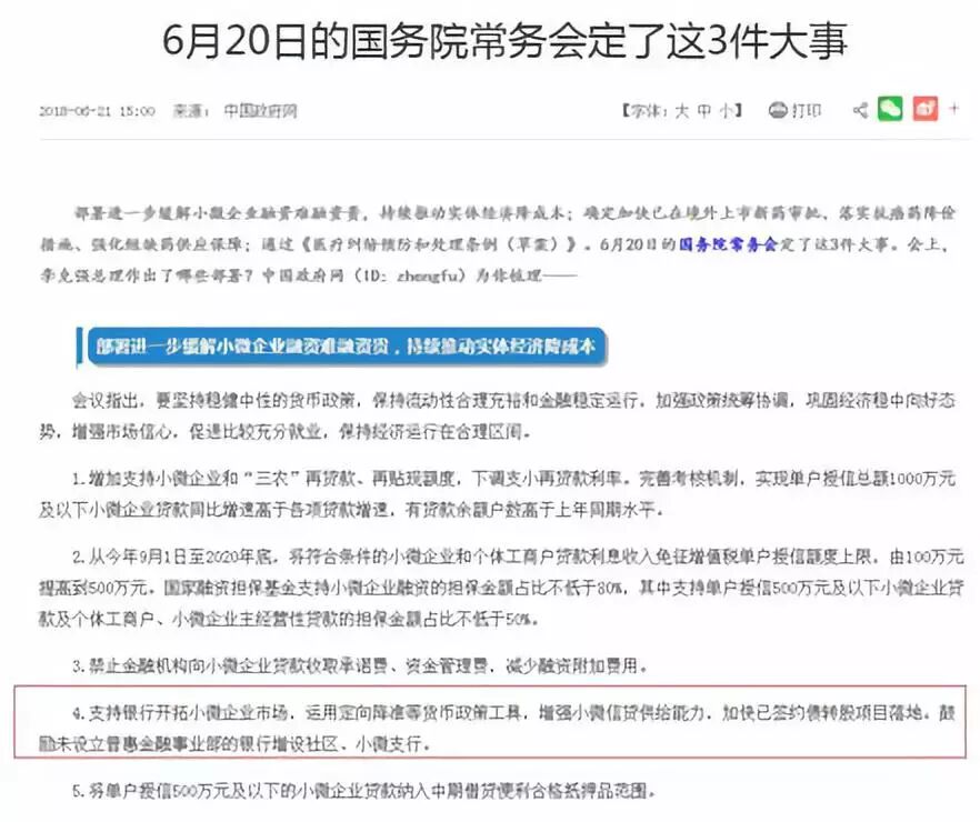 6月20日,中国政府网消息显示,为进一步缓解小微企业融资难融资贵,持续推动实体经济降成本的五项工作当中,第四项提到支持银行开拓小微企业市场,运用定向降准等货币政策工具,增强小微信贷供给能力。