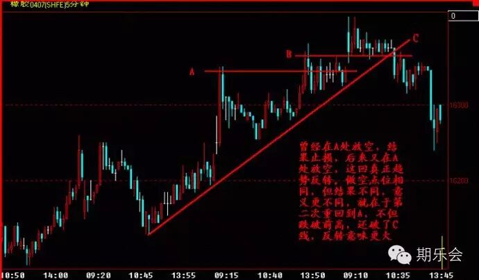 下面的几张图体现的是交易思想中的一个重要理念,即在最容易止损的地方进场!什么叫最容易止损?1、即止损价位容易设置(如趋势线处,圆弧顶底,颈线位等)2、入市价离止损价相差不远(过远则失去了止损的意义),这就叫最容易止损。为什么要做到在最容易止损的地方进场?因为这是从原则上体现着每一笔交易都有止损准备,在明确每一笔损失的前提下博取额外利润。这种理性的操作规则是在这个市场中获利的根本。