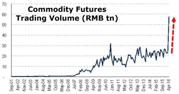 中国商品期货市场本周交易金额达到3500亿美元,是2月1日那周的17倍,当时交易金额为200亿美元(这跟此前A股巅峰时期的交易量差不过,难道是巧合?)。