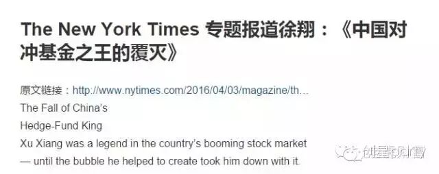徐翔是纽约时报报道中的中国对冲基金之王。