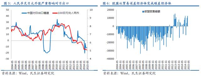 从外部看,压力来自贸易再平衡。发达国家的复苏是以纠正贸易失衡为动力,最典型的是欧盟,欧洲经济自去年以来持续复苏,但1-5月中国对欧盟出口增速同比下滑2.3%,原因是欧盟已经从一个贸易逆差经济体变成顺差经济体,2014年欧盟总体实现顺差123亿欧元,今年1-5月又实现顺差121亿欧元。而且随着希腊债务到期压力加大,要么接受紧缩、民众不满、国内动荡,要么不接受紧缩、违约甚至退欧、欧洲动荡,这都将使原本脆弱的欧洲复苏再添新愁。