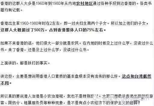 知乎的Wang Thomas分析,这与香港的人口质地有关:香港市民主体其实是一群小农。