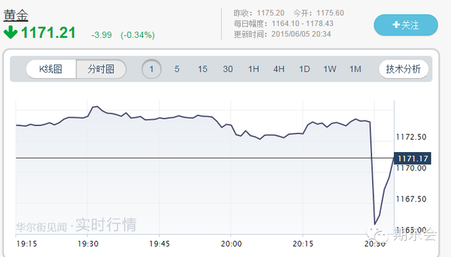 黄金跌破1170