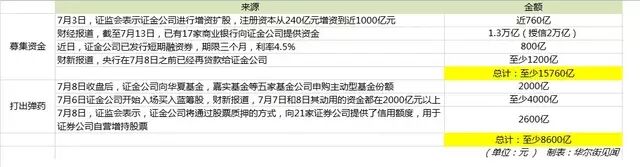 1)国家队可动用的资金规模大约在2万亿元,包括已经打出去的子弹。通过财经等媒体的报道,17家商业银行已经向证金公司借出了1.3万亿元,证金公司通过发债以及央行多种途径的流动性注入,总体上大概可以获得2万亿的资金。如此看来政府的弹药充足,足以为市场提供支撑。