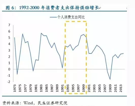 1995-2002年的美元走强起因于网络经济的兴起。美国在1995年率先进入网络科技时代,这一新兴产业为美国经济贡献了新的增长点,全球资本纷纷流入美国寻找投资机会。这一时期美国消费者支出强劲,储蓄率降至低位,同时通胀仍保持温和(图2),充分证明了基本面的强力支撑。美元升值诱发亚洲金融危机,随后欧洲爆发科索沃战争,都促使资本进一步回流美国。美国经济强劲叠加海外经济危机背景下避险情绪增强共同造就了史上最长的美元升值周期。直至2000年互联网经济泡沫破灭,以及2001年“9.11”事件爆发,美元才结束此轮牛市。