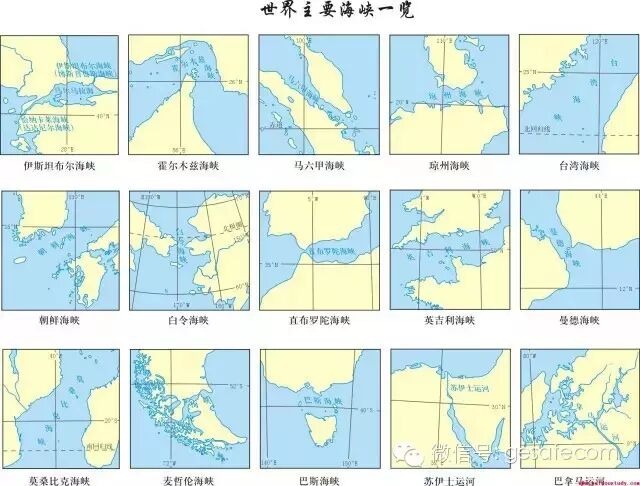 8. 霍尔木兹海峡:西接波斯湾,东连阿曼湾,被称为“海上石油通道的咽喉”、“世界油库阀门”。波斯湾地区盛产石油,而这些石油又必须通过霍尔木兹海峡进入印度洋,运往远东、欧美。平均每8分钟就有一艘巨型油轮从霍尔木兹海峡通过。