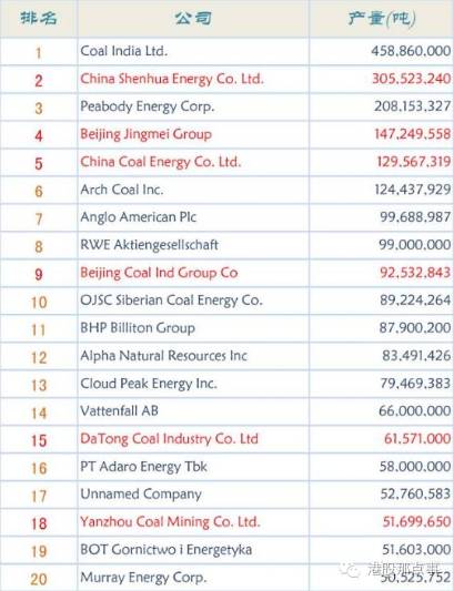 想知道这些倒下的巨人到底有多大,去拉一下全球煤炭企业2014年产量排名表就知道了(见下表)。