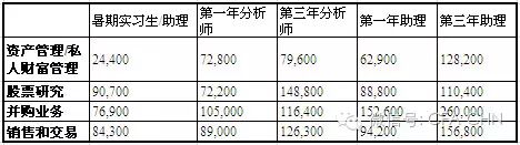 以下就是华尔街的薪水级别。平均数多少会有一定出入,因为某些城市的薪酬会比其他城市高。纽约的薪酬要高于平均水平,而一些小城市的薪酬则低于平均水平。