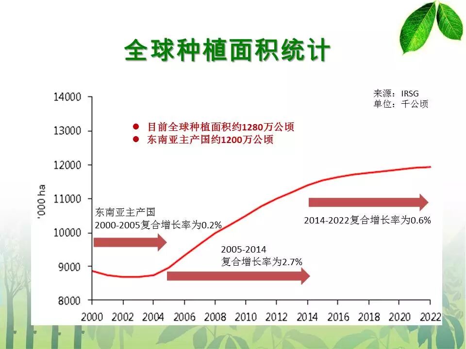 全球种植概况目前全球总种植面积约1280万公顷,其中东南亚约1200万公顷;