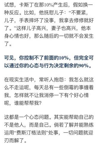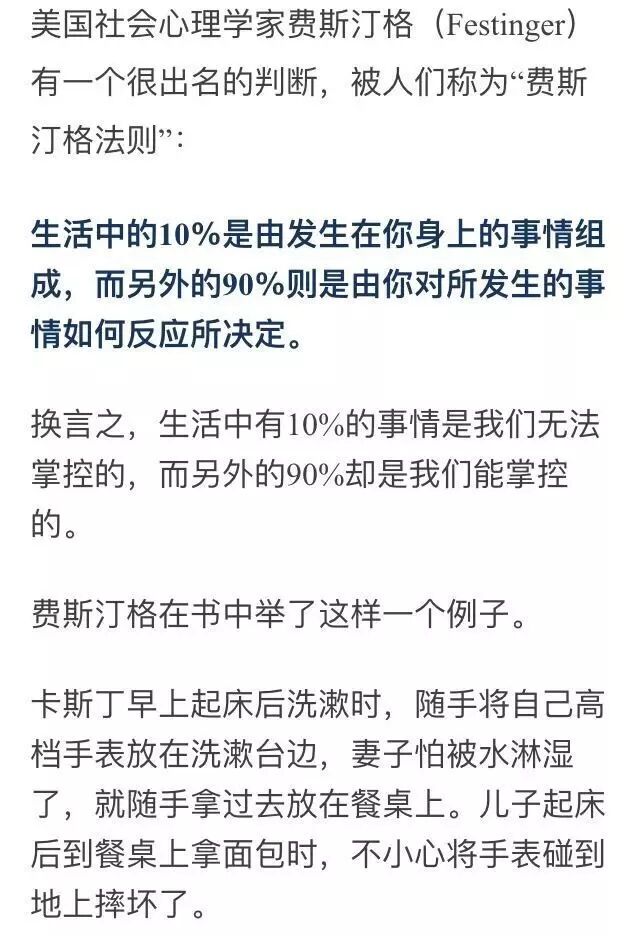 在这个事例中,手表摔坏是其中的10%,后面一系列事情就是另外的90%。
