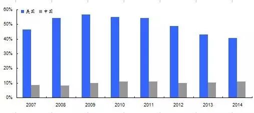 图中显示,美国房贷占住宅总市值之比在2009年的时候上升到55%,这也是次贷危机的诱因,之后缓慢回落,但仍有40%左右。但中国基本维持在10%左右的水平,说明中国房价尽管高,但银行的房贷资产风险很低,这也是为何中国的房贷坏账率很低的原因。当然,这一比例只是反映了存量比,过去三年房贷规模大幅上升,增速大大超过房价的涨幅,因此,银行房贷的新增部分存在一定风险。