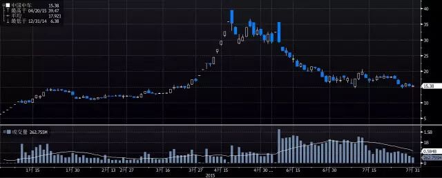 6月9日,中国中车复牌第二天,股价从涨停到跌停。中车是这轮牛市的旗帜和龙头。龙头股对行情的影响具有标杆意义,这点在投机界传奇李佛摩尔的《股票大作手回忆录》里反复提及。