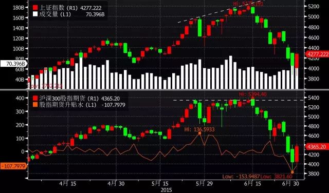 5月28日星期四,中央汇金减持四大行,当天上证放量暴跌6.5%。从这天开始,市场波动率显著抬升。期指升水迅速抹平,两天里升水跌去近90点。